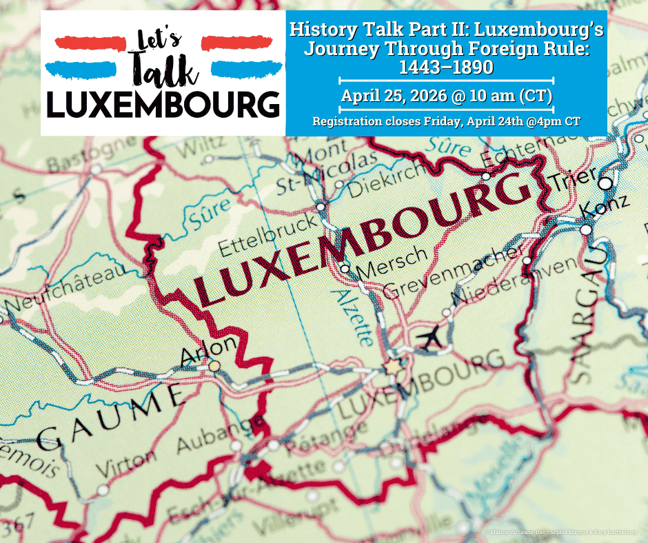 In these virtual programs, we will explore Luxembourg/Luxembourg-American history and culture, current events, lasting traditions, and so much more!